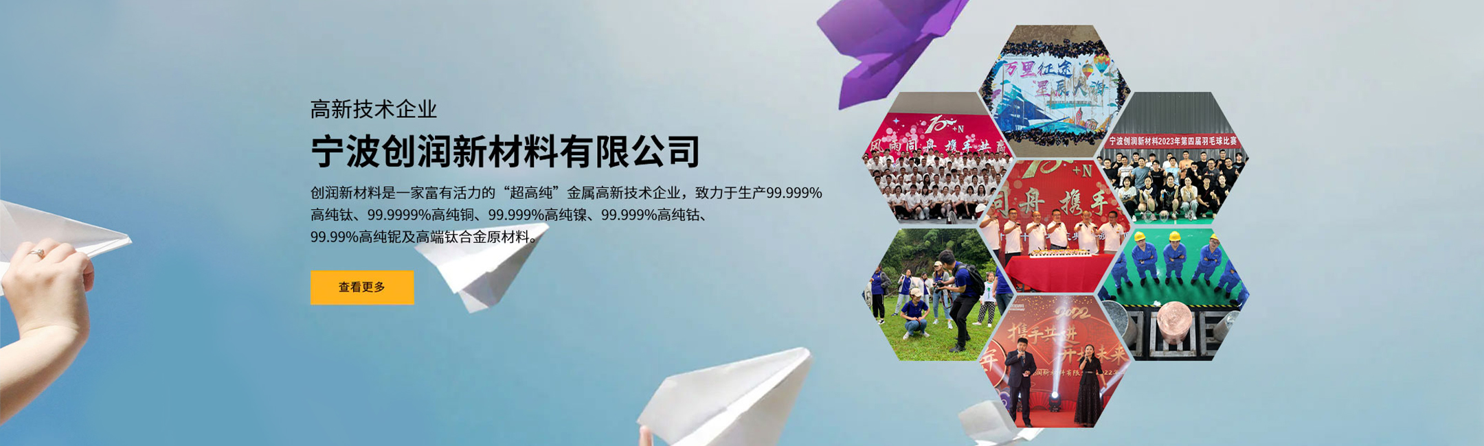 創(chuàng)潤(rùn)新材料是一家富有活力的“超高純”金屬高新技術(shù)企業(yè),致力于生產(chǎn)超高純金屬原材料。產(chǎn)品涉及半導(dǎo)體靶材,航空發(fā)動(dòng)機(jī),生物醫(yī)療用高純金屬, 軍工用特殊性能材料等。是國(guó)內(nèi)唯一的超高純鈦金屬產(chǎn)業(yè)生產(chǎn)基地,使中國(guó)躋身為世界上僅有的三個(gè)擁有該技術(shù)和產(chǎn)線的國(guó)家之一。經(jīng)過(guò)多年的市場(chǎng)開(kāi)拓與客戶驗(yàn)證,創(chuàng)潤(rùn)逐步形成了超高純鈦、銅、鎳、鈷、鈮及高端鈦合金產(chǎn)品體系。
